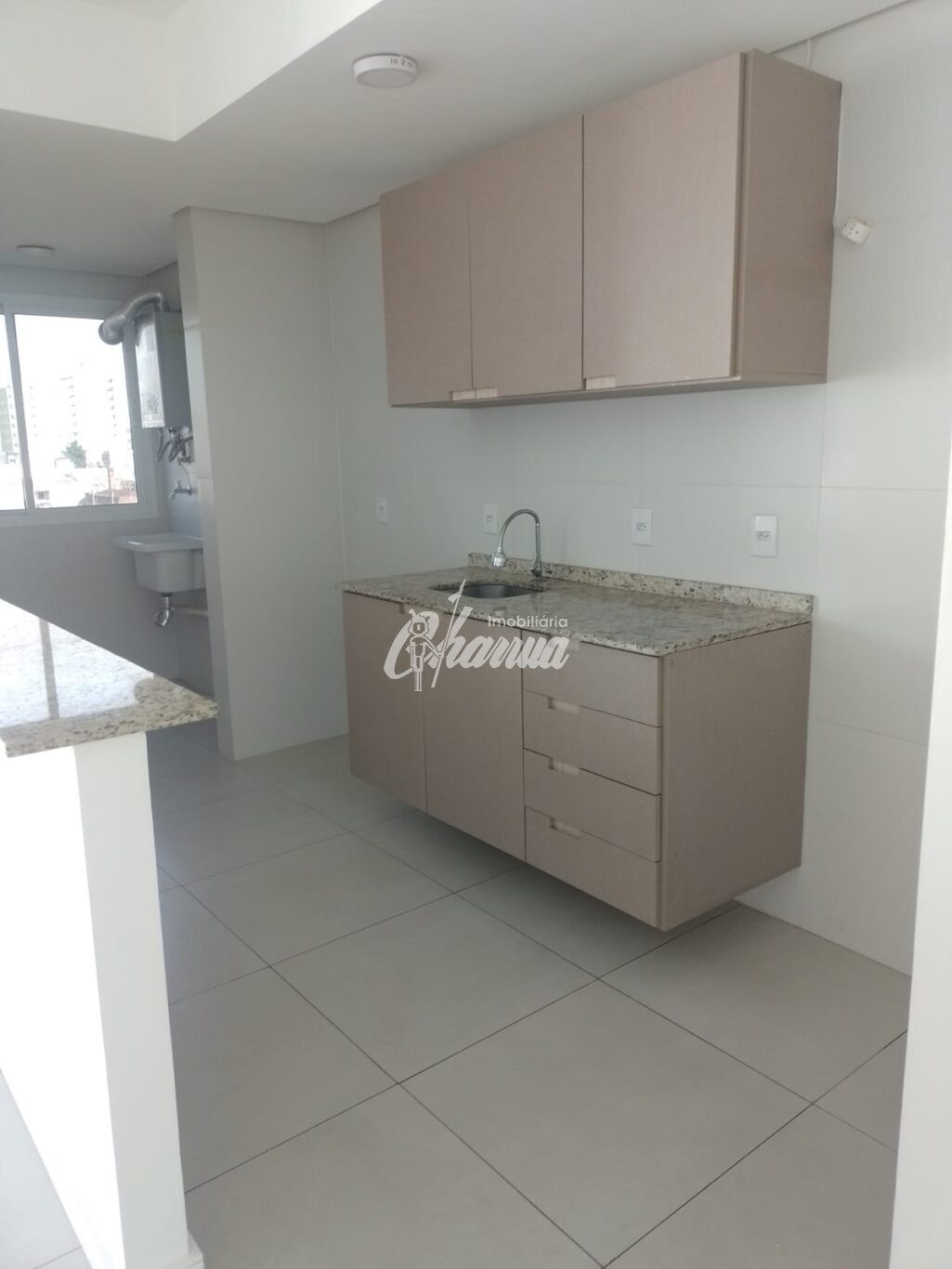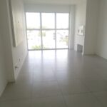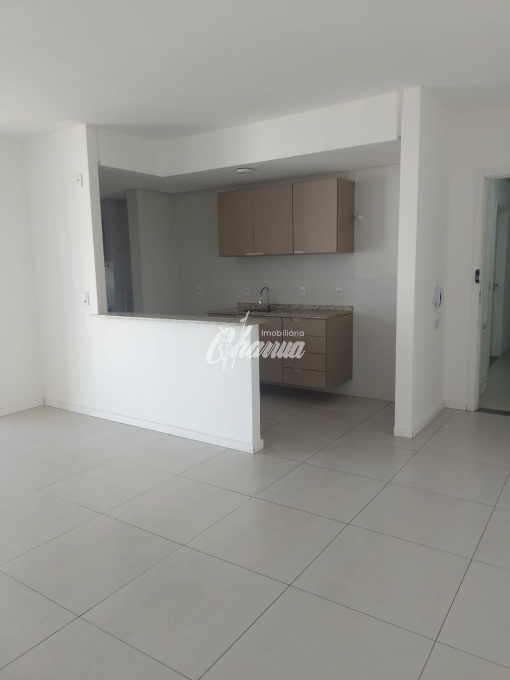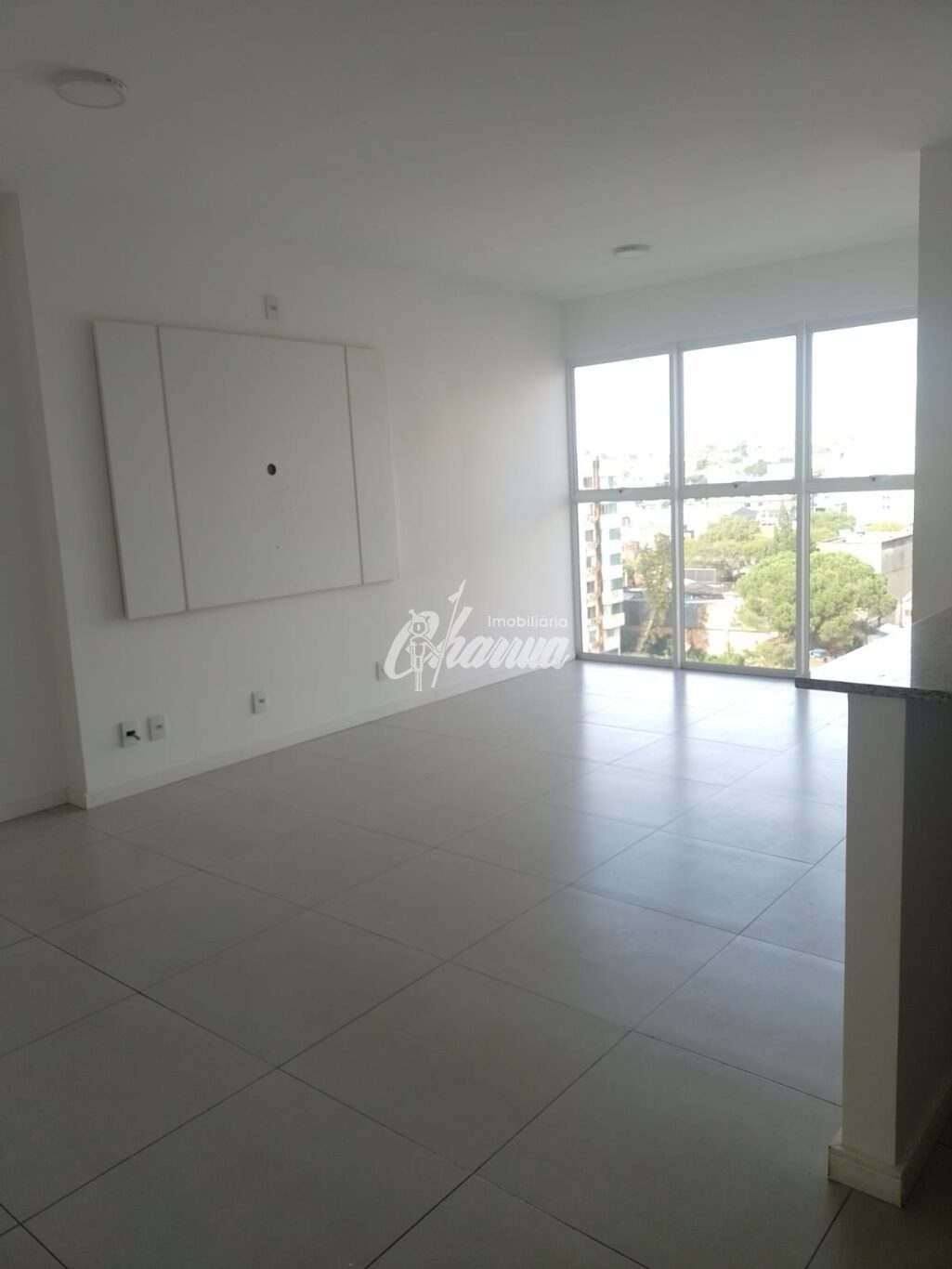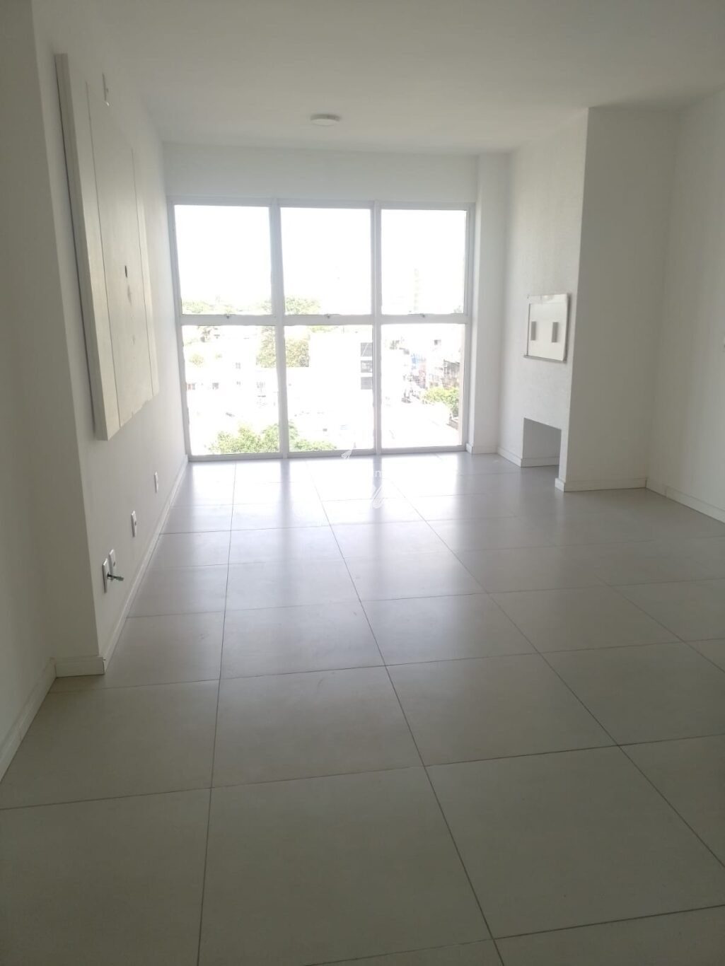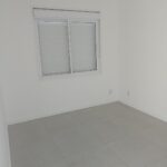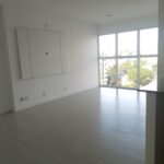 Apartamento com sala com churrasqueira, dois dormitórios sendo uma suíte, banheiro social, cozinha com área de serviço e box para carro.