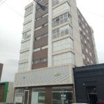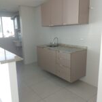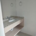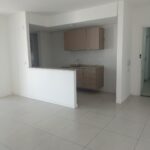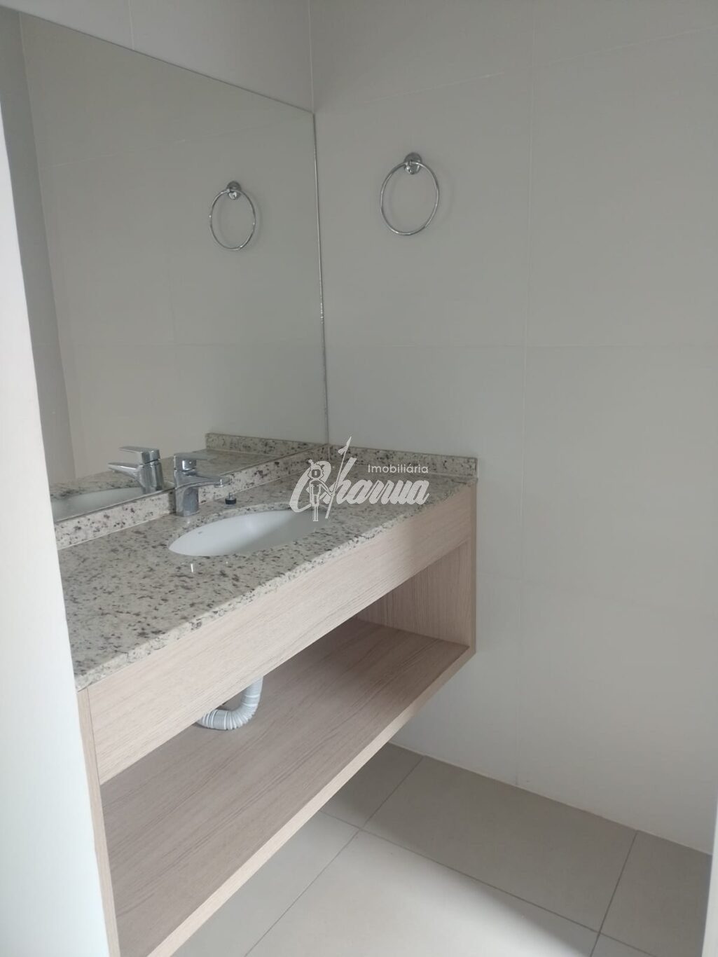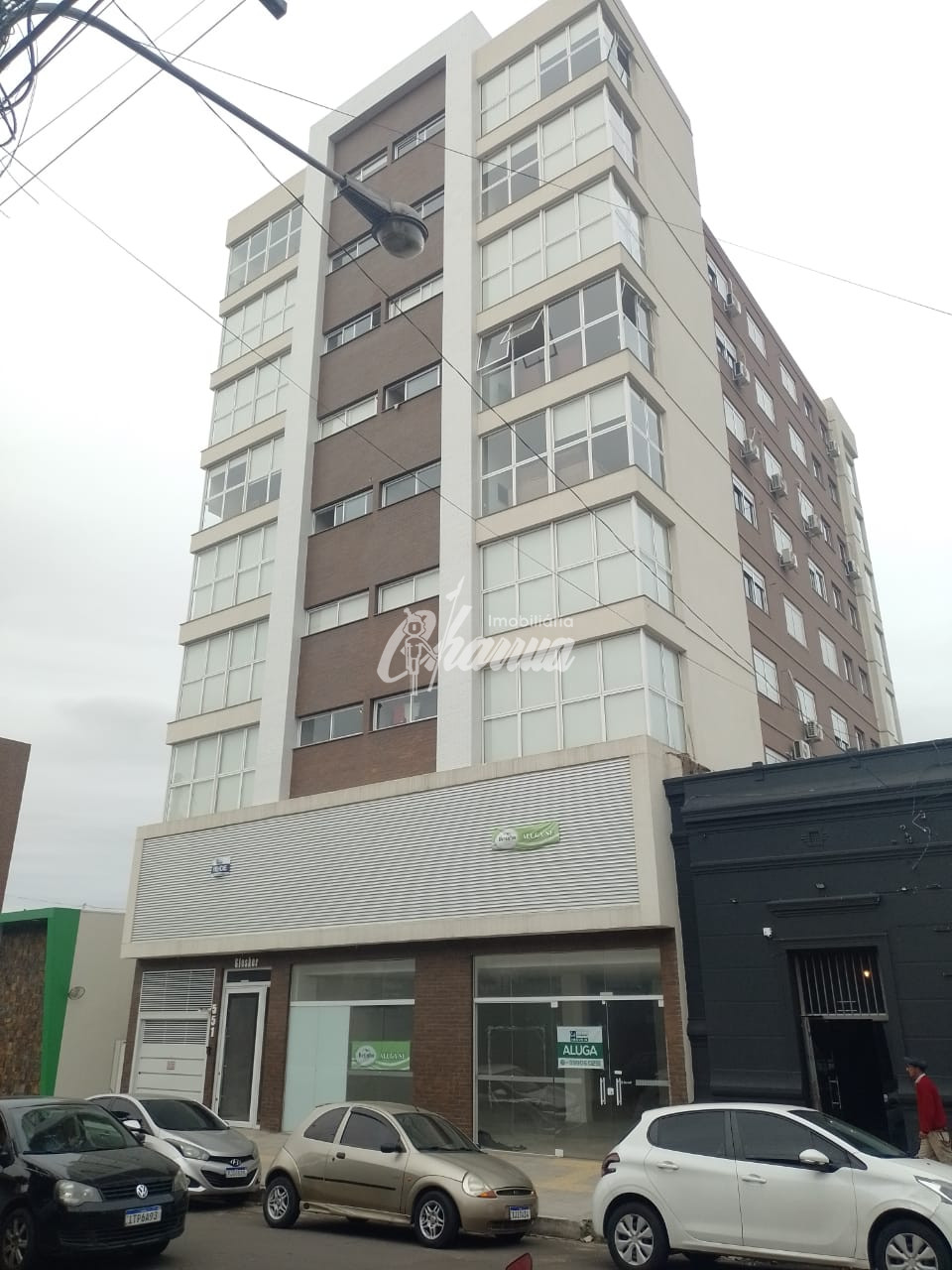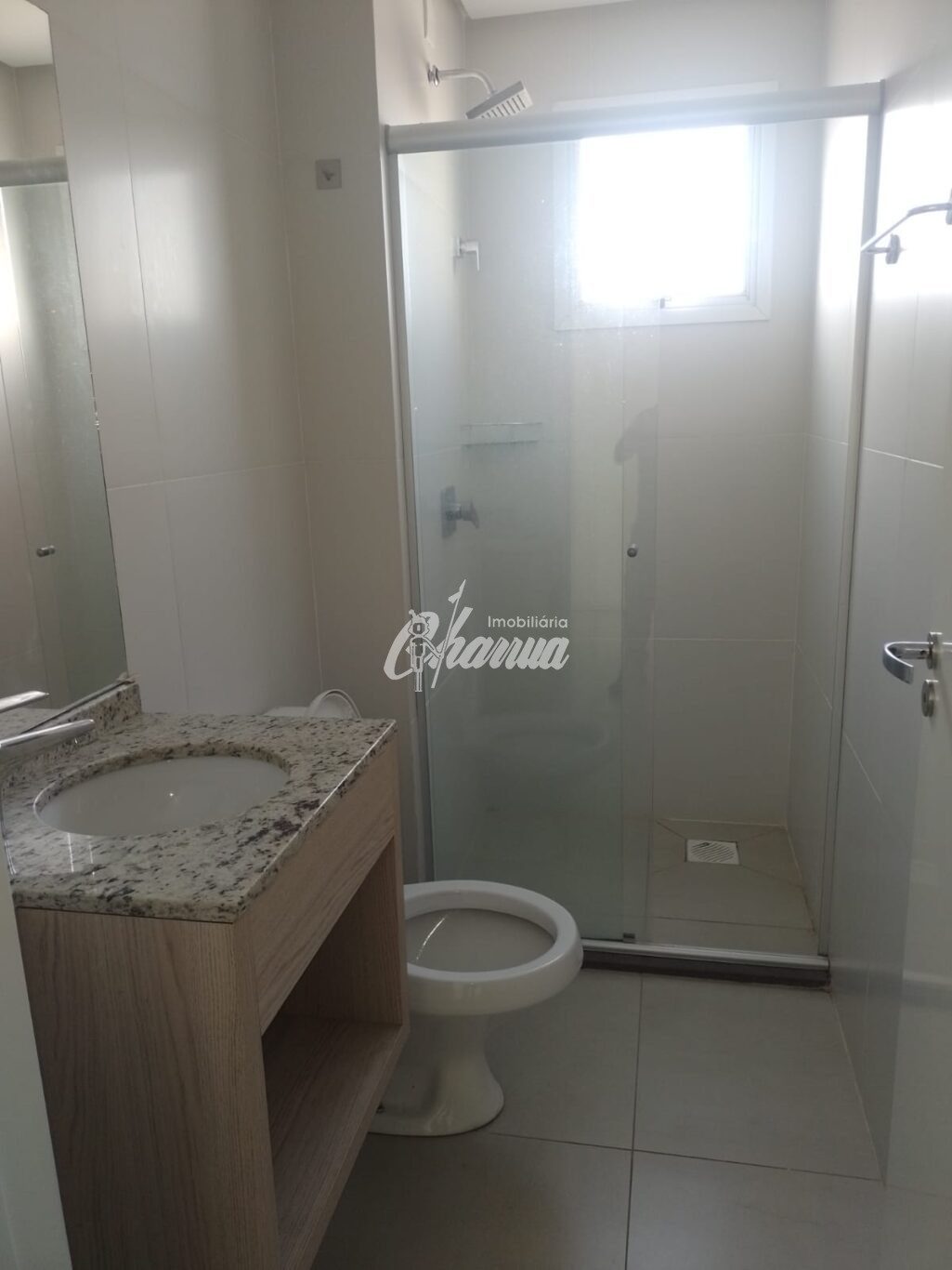 Apartamento com sala com churrasqueira, dois dormitórios sendo uma suíte, banheiro social, cozinha com área de serviço e box para carro.