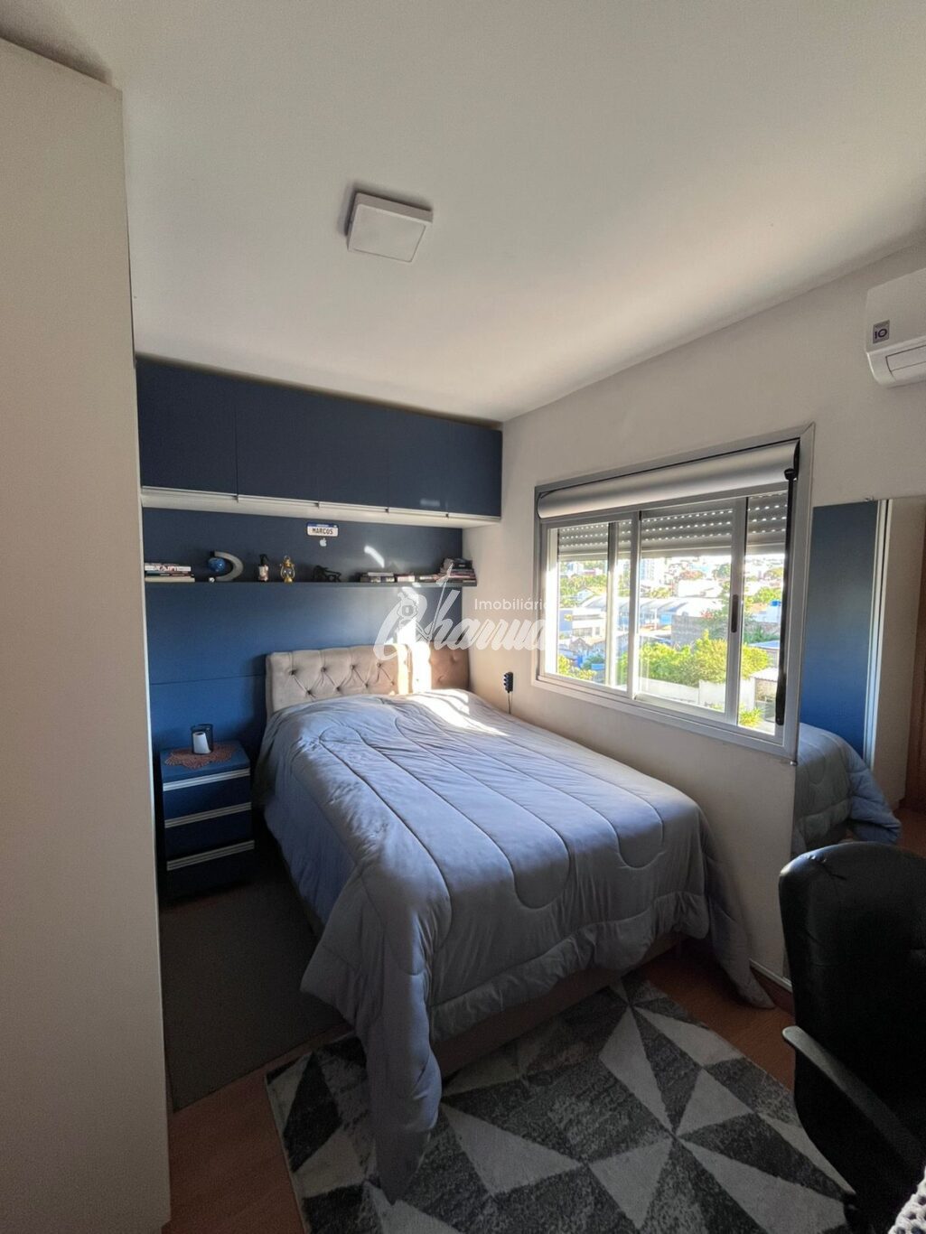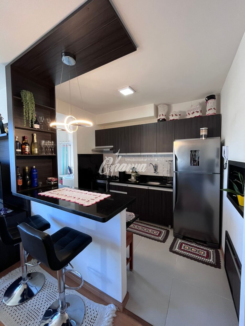 Apartamento mobiliado com sala, sacada, 02 dormitórios com armários planejados, sendo uma suíte, banheiro social, cozinha planejada com churrasqueira, área de serviço e box para carro.