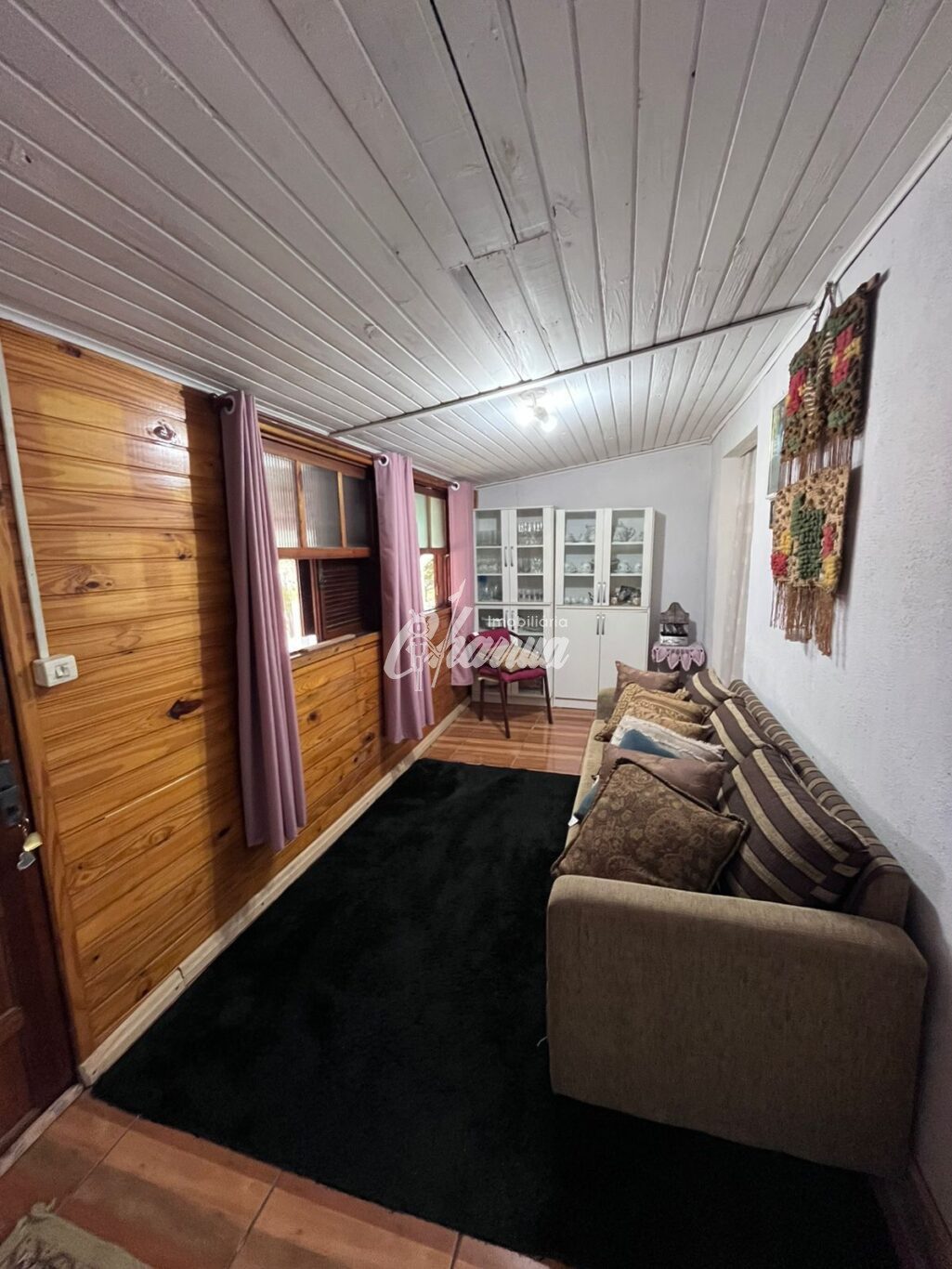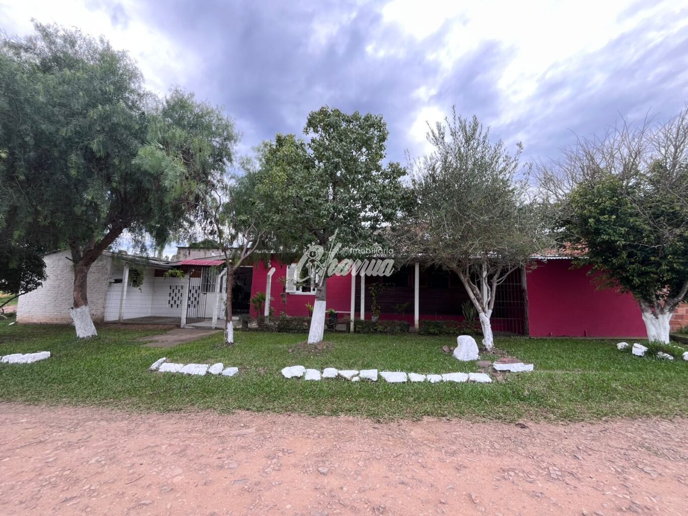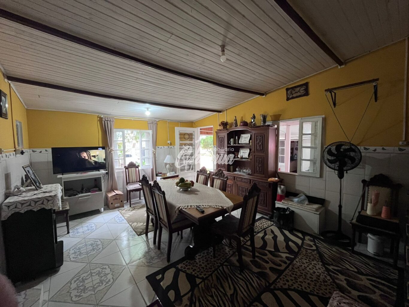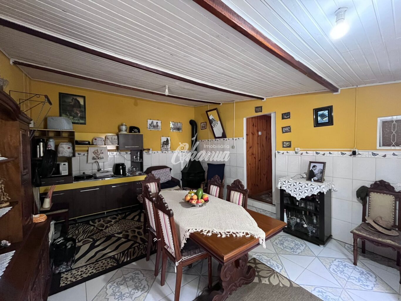 Casa com sala (lareira), sala de jantar, 03 dormitórios, 03 banheiros, cozinha, área de serviço, galpão e pátio.