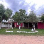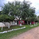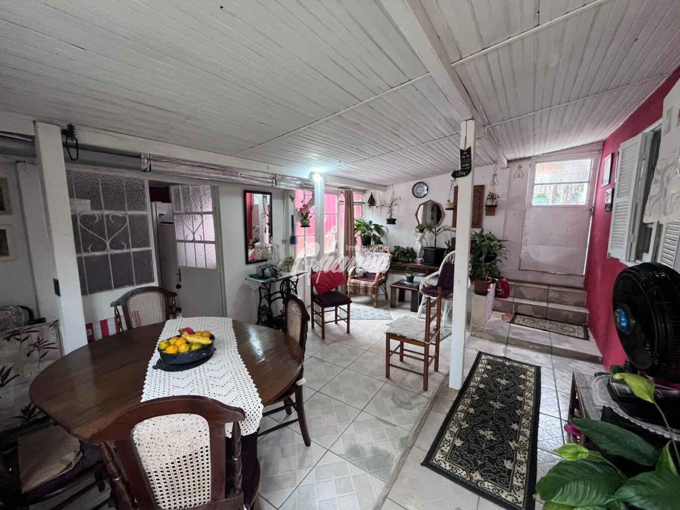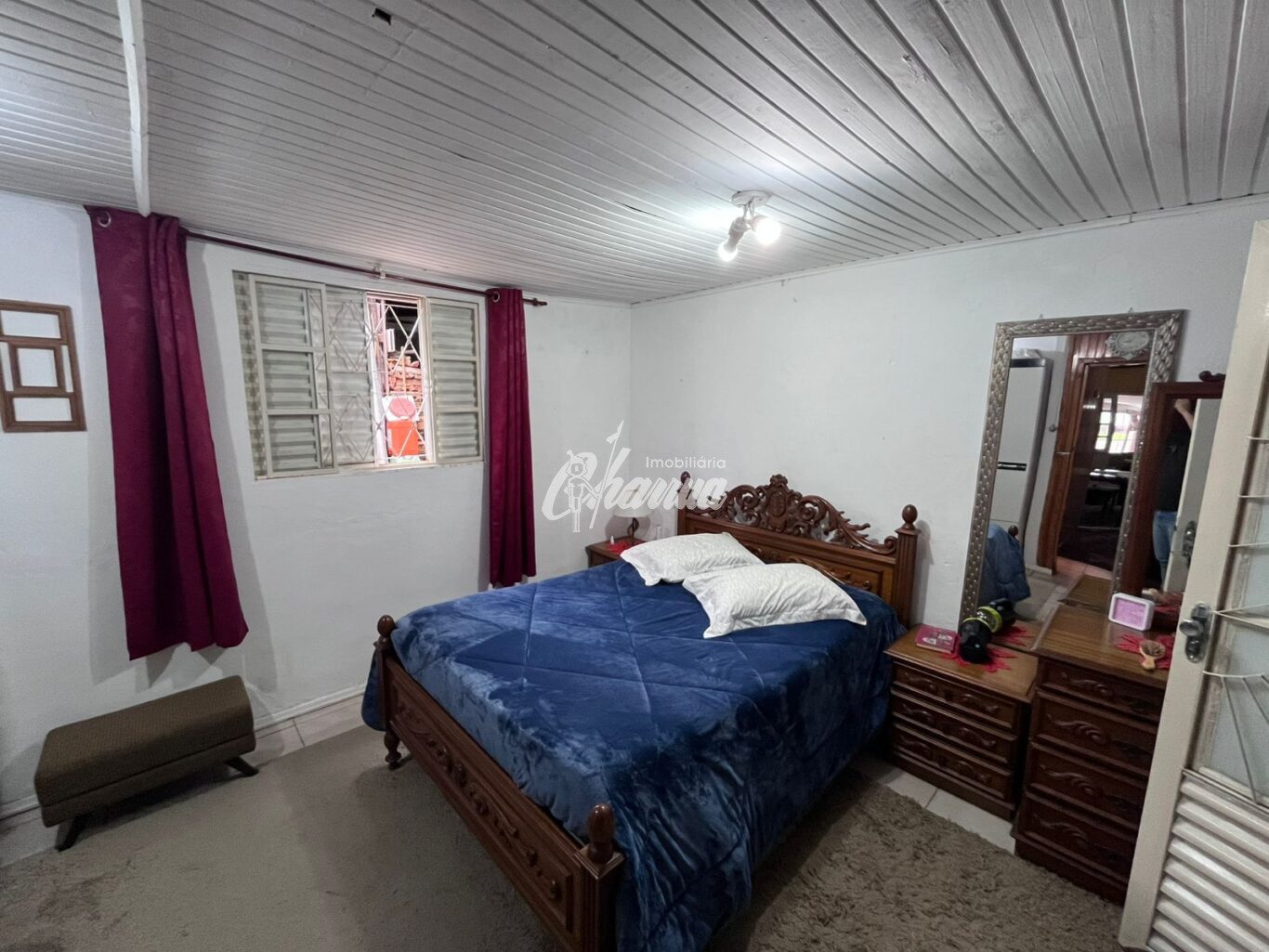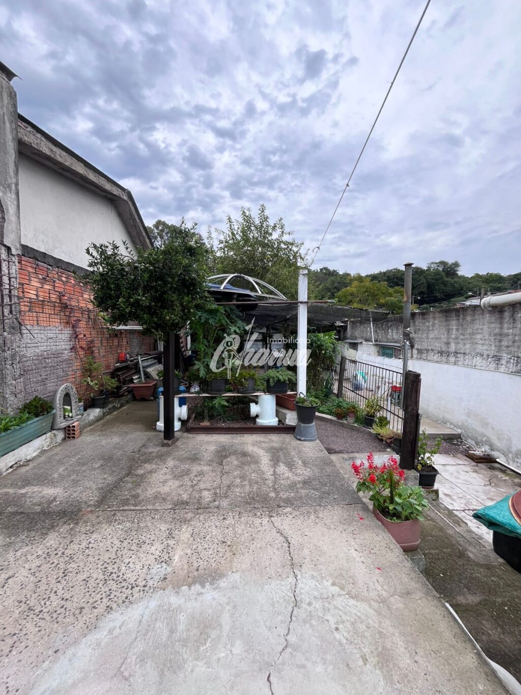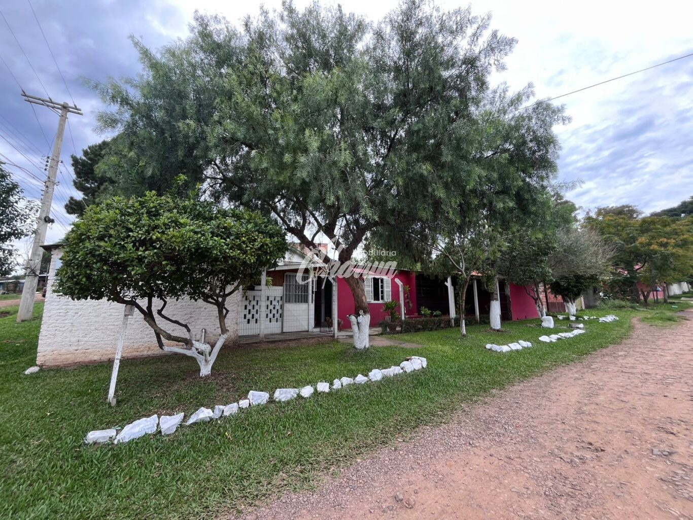 Casa com sala (lareira), sala de jantar, 03 dormitórios, 03 banheiros, cozinha, área de serviço, galpão e pátio.
