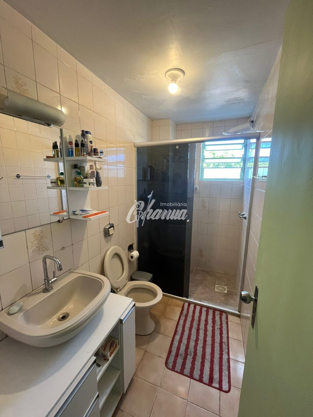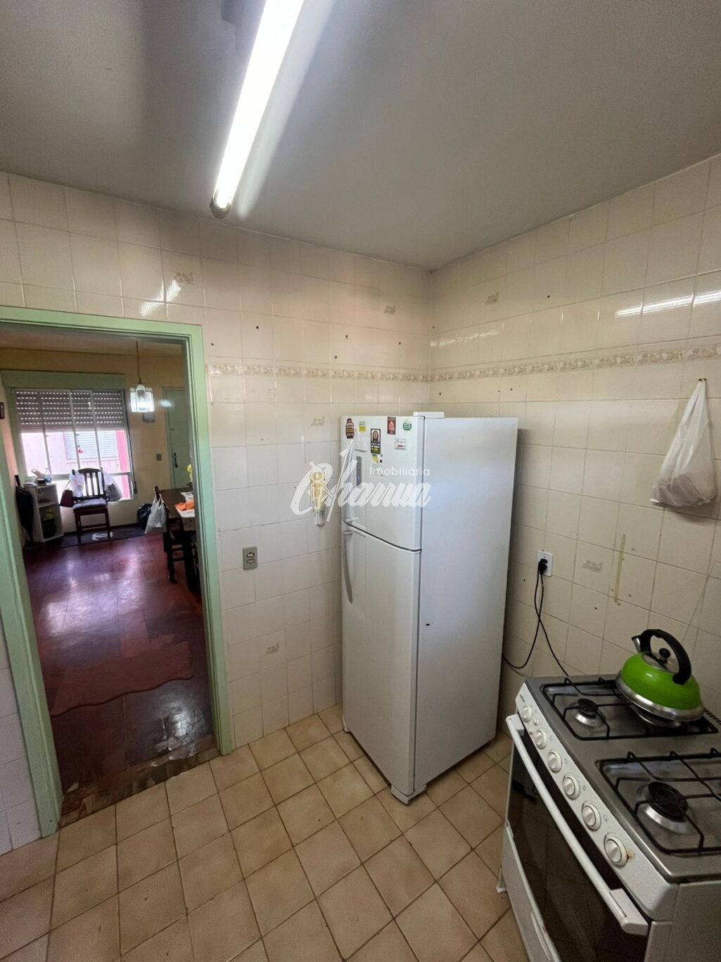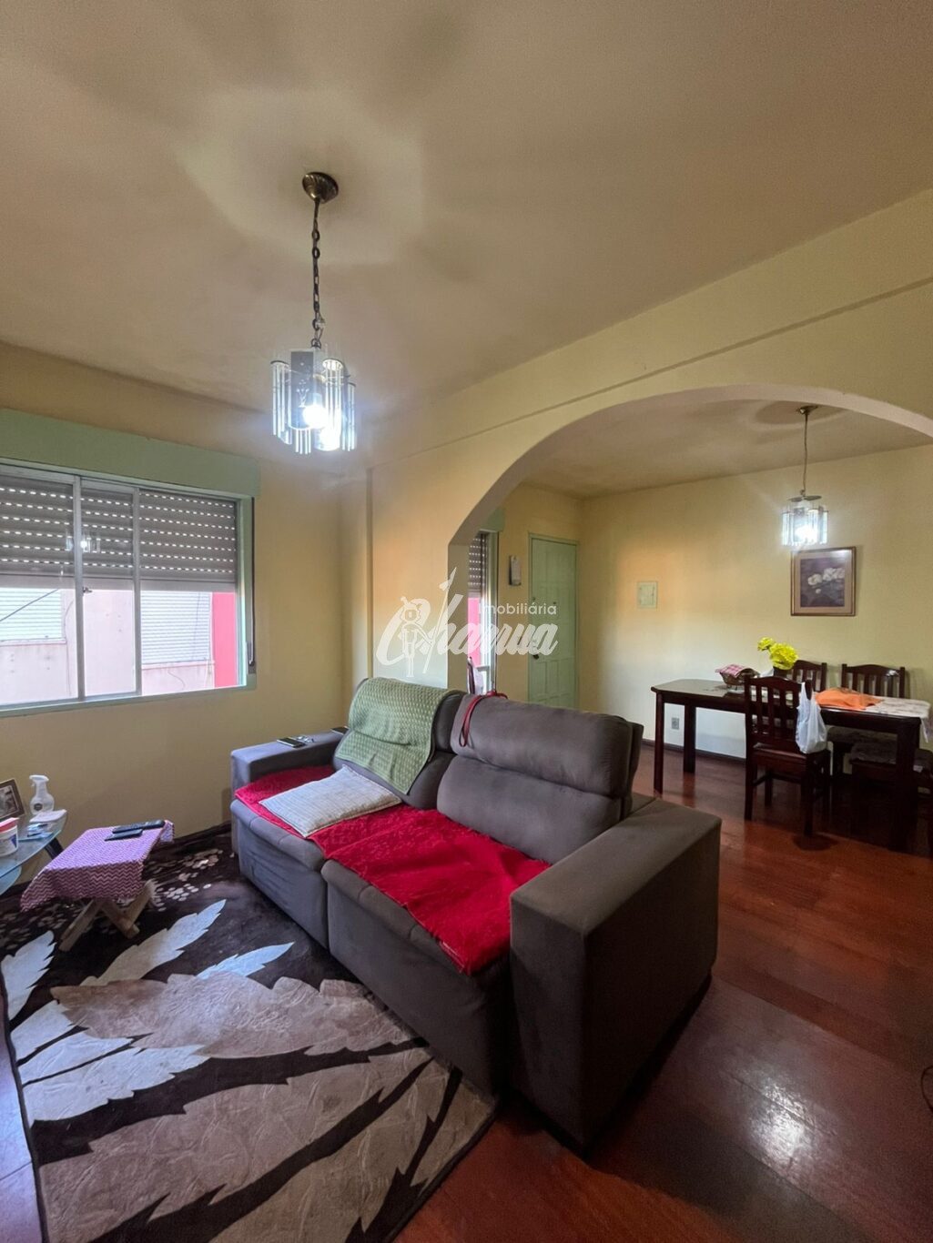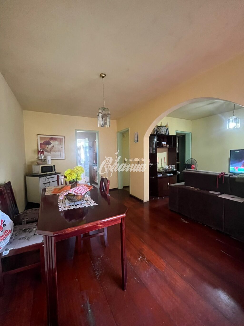 Apartamento de 03 dormitórios, transformado em 02 dormitórios, sala de estar, sala de jantar, banheiro e área de serviço com banheiro.