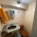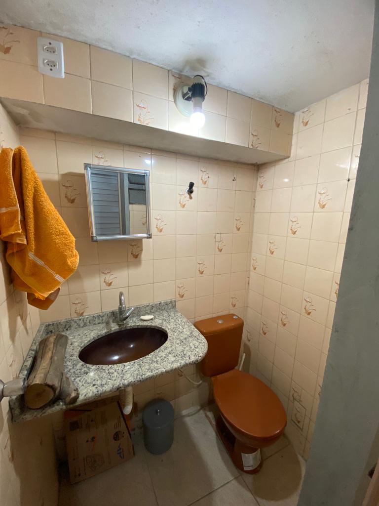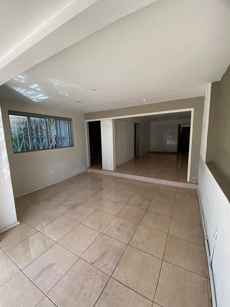 Sala comercial com aproximadamente 40m² com divisórias e banheiro.