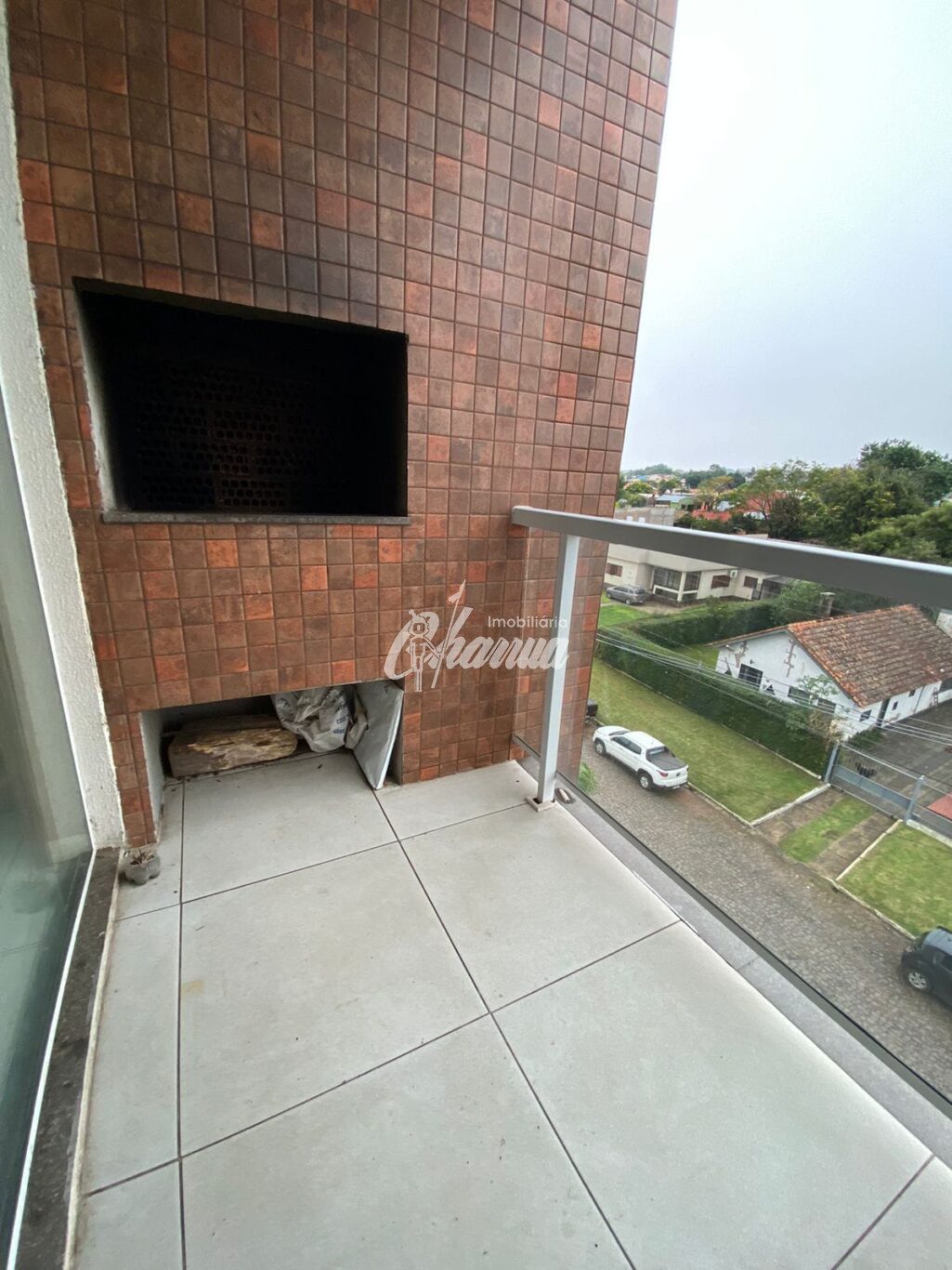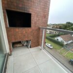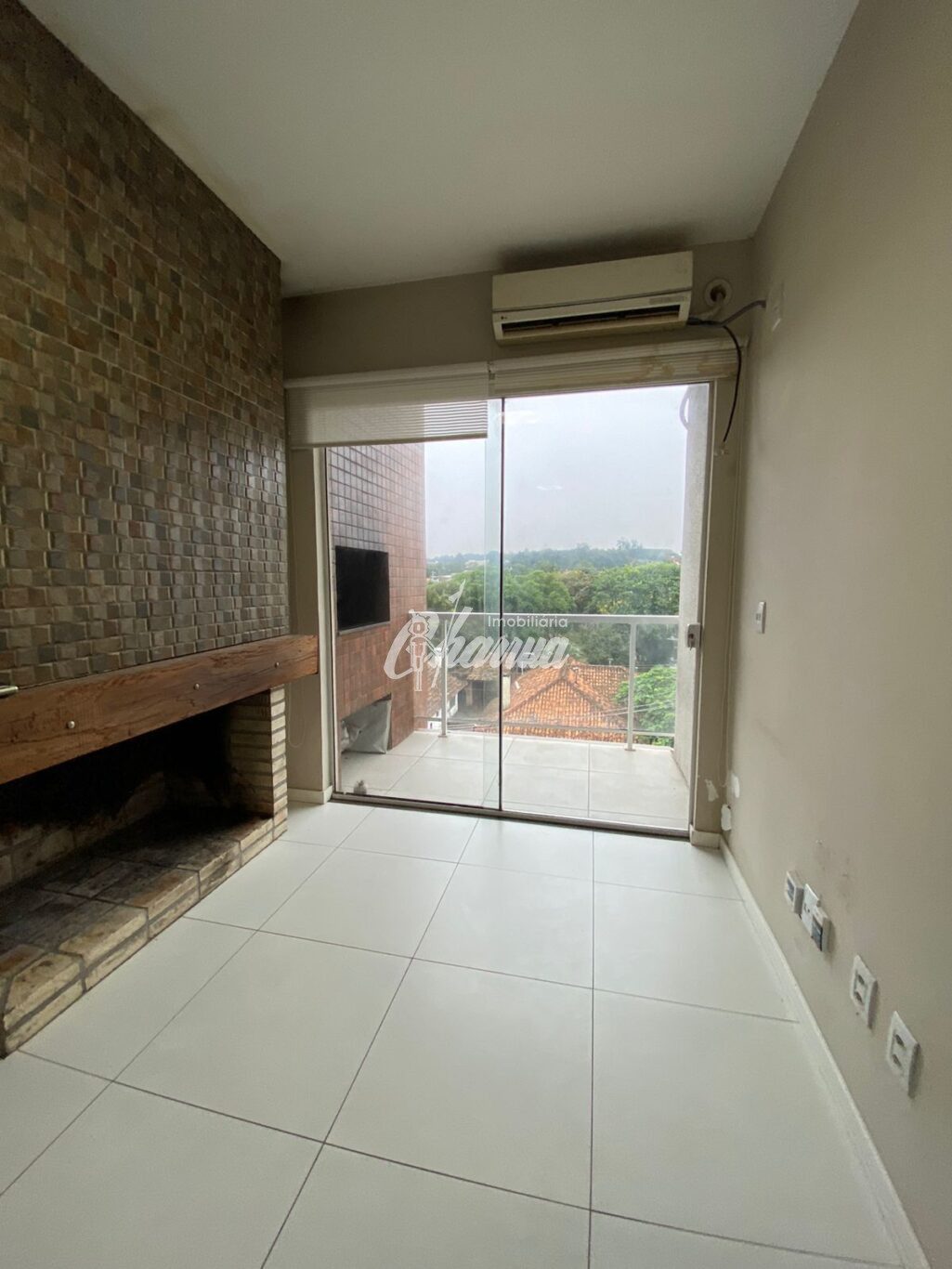 Apartamento com sala com lareira, sacada com churrasqueira, 02 dormitórios, banheiro, cozinha, área de serviço e box para carro.