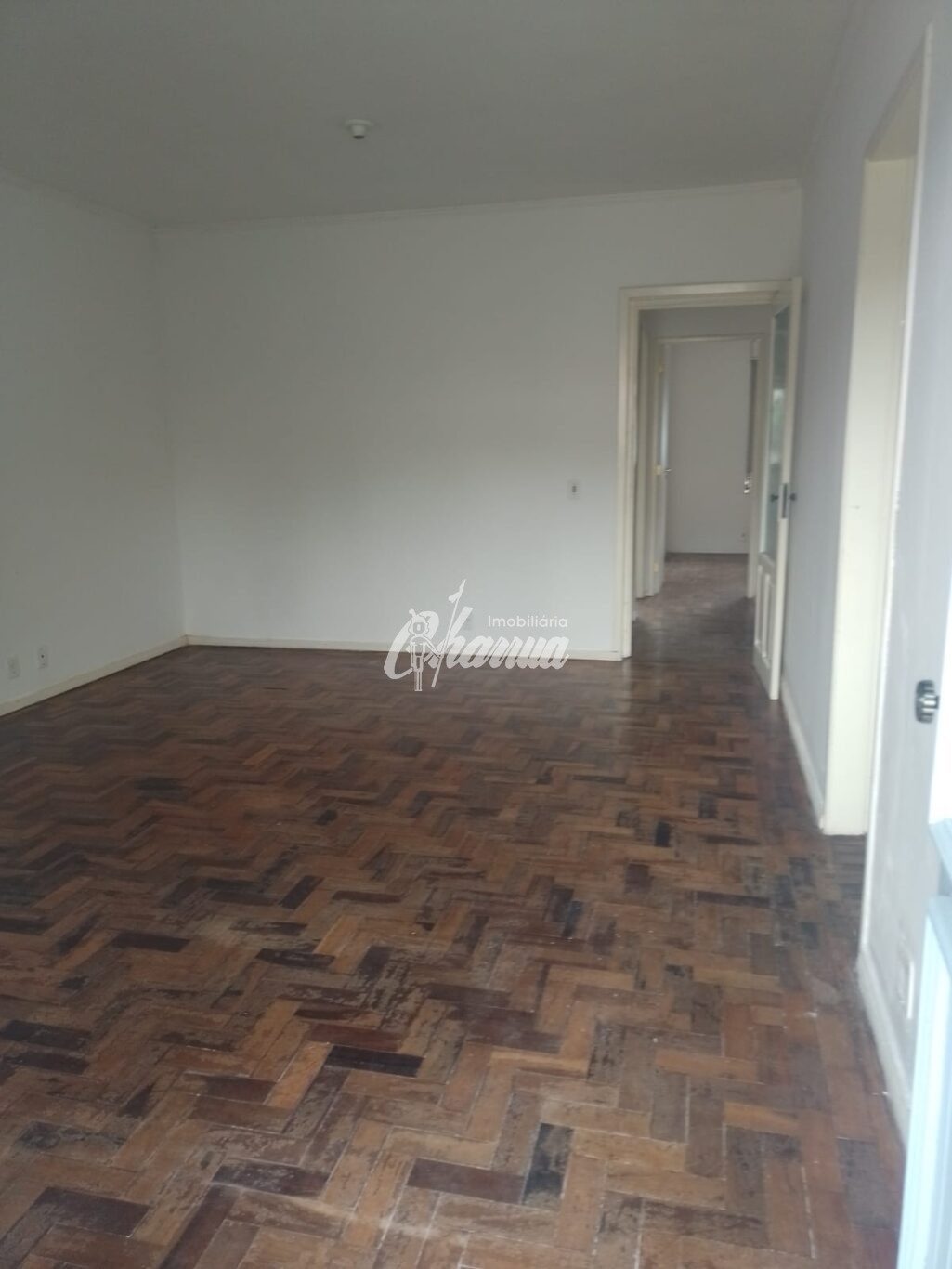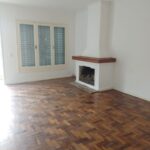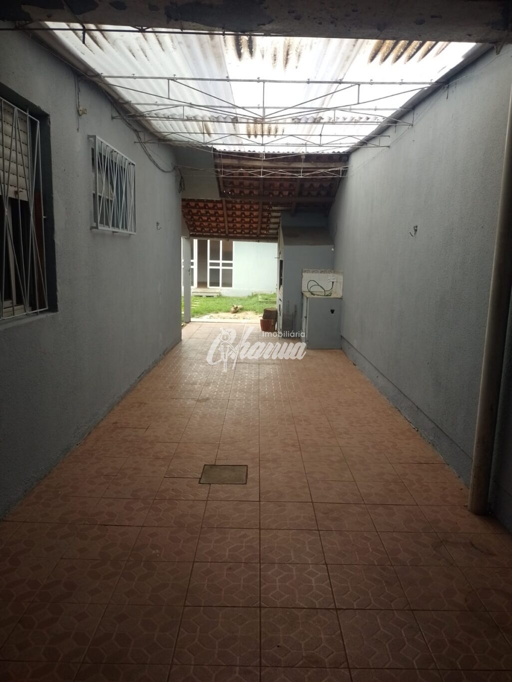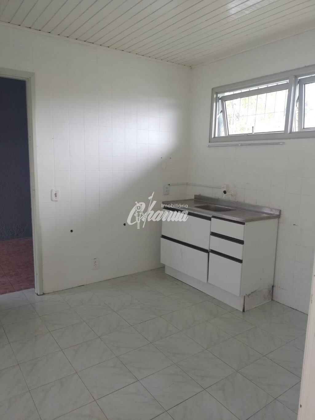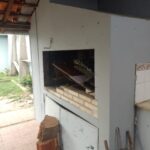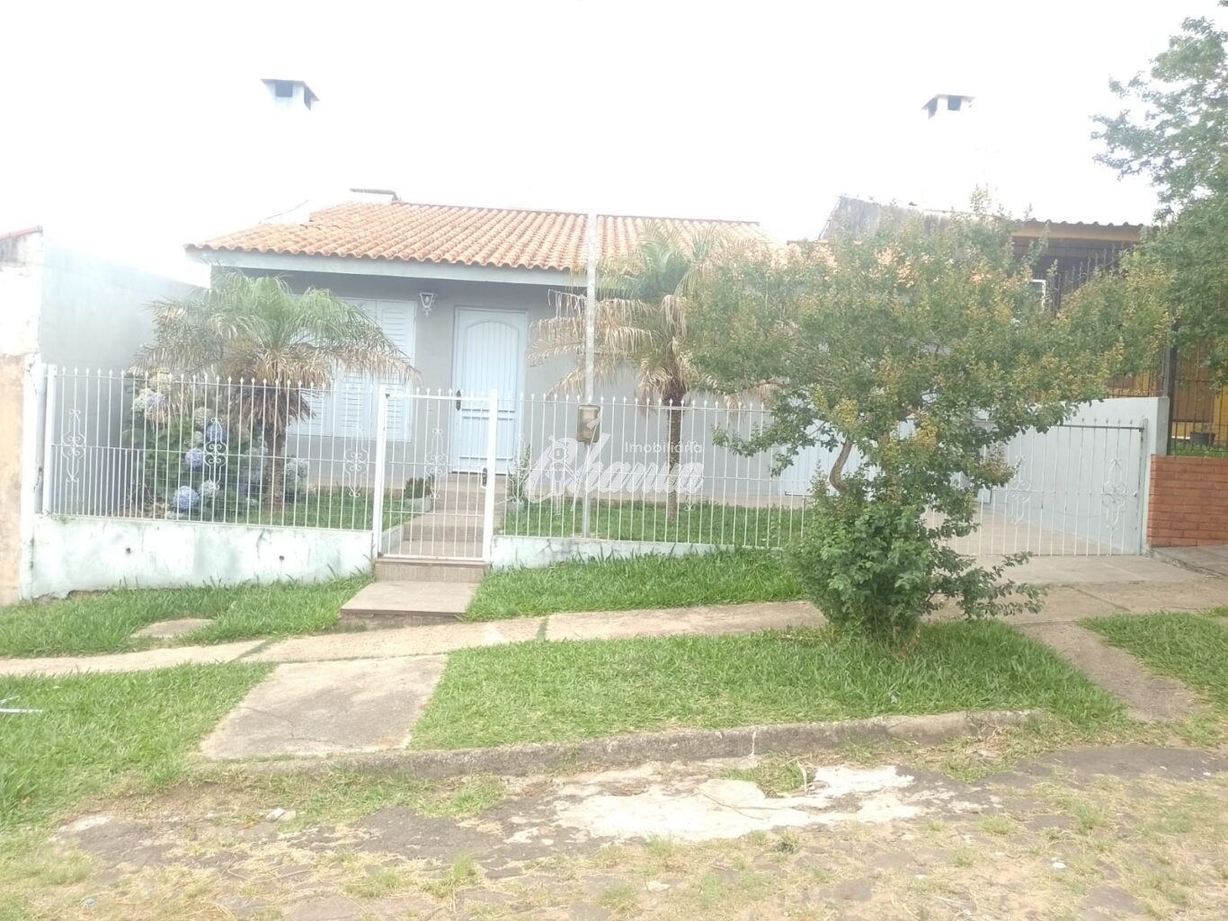 Casa com sala com lareira, três dormitórios, sendo um suíte, banheiro social, cozinha, salão de festas com banheiro e subsolo, garagem com churrasqueira e pátio.