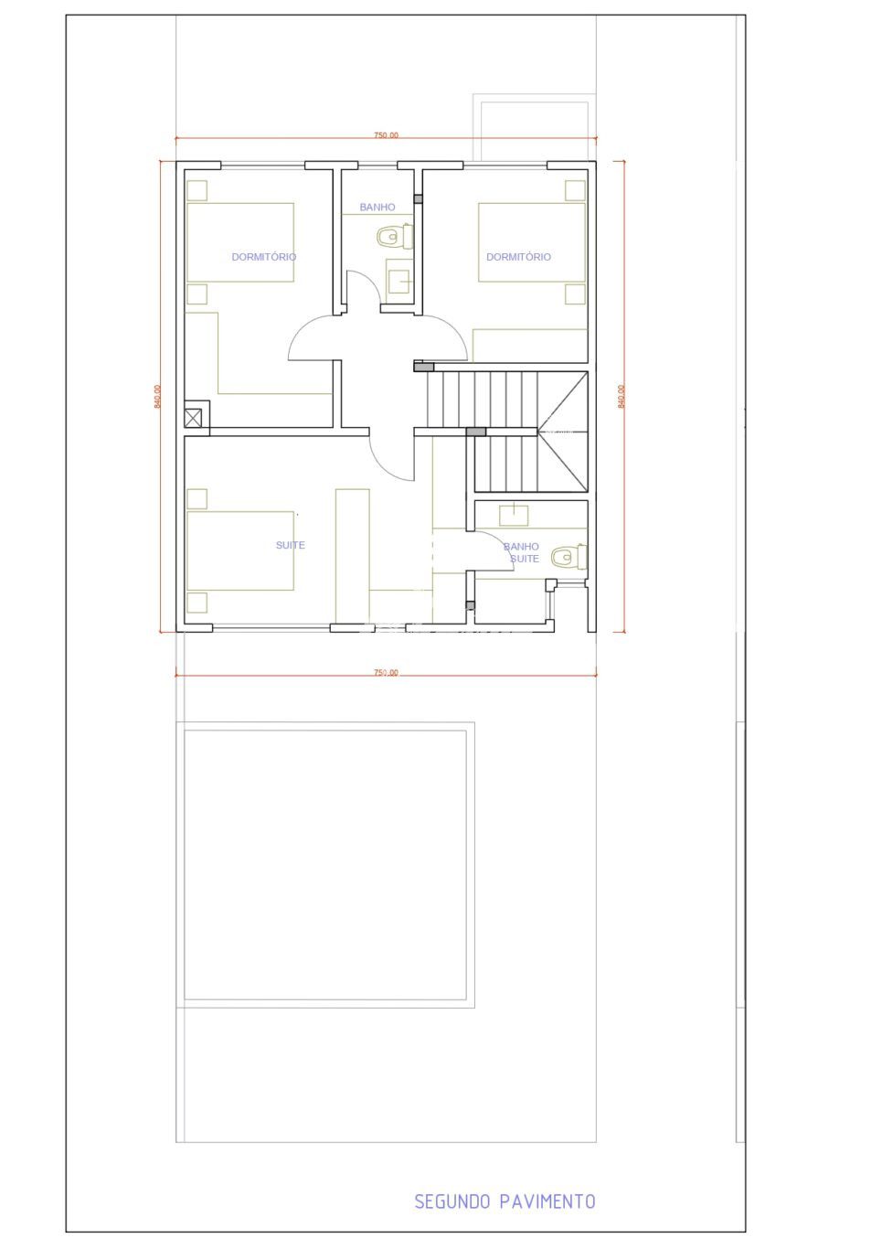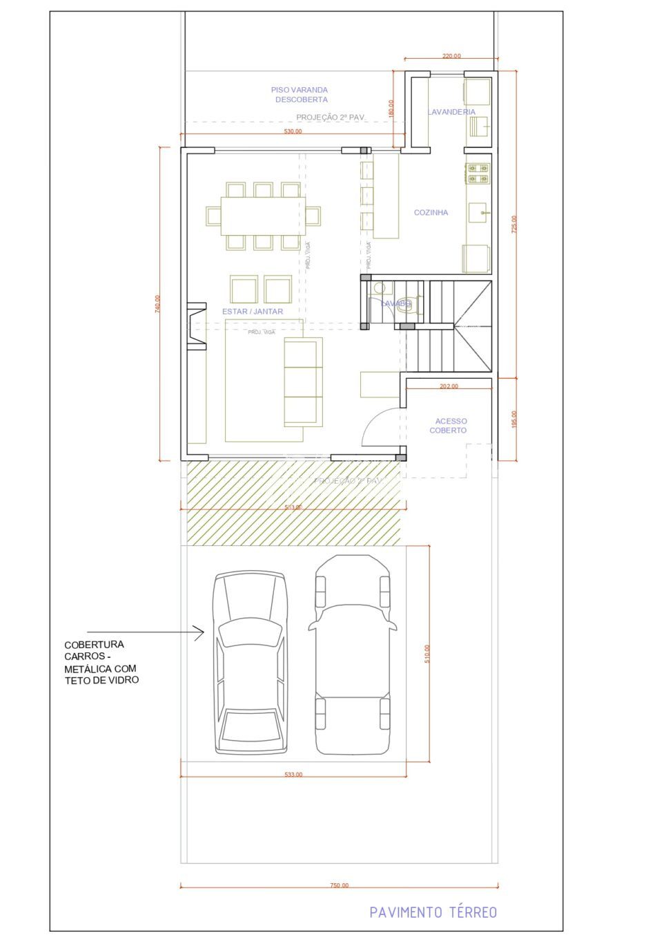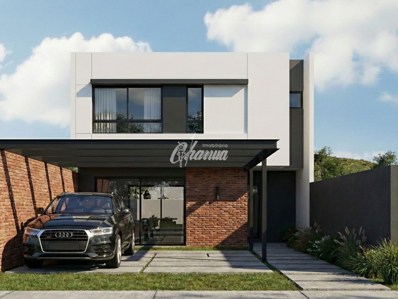 Casa em construção com sala de estar (lareira), sala de jantar, lavabo, cozinha, lavanderia, 03 dormitórios, sendo uma suíte, banheiro social, garagem para 02 carros e pátio.