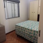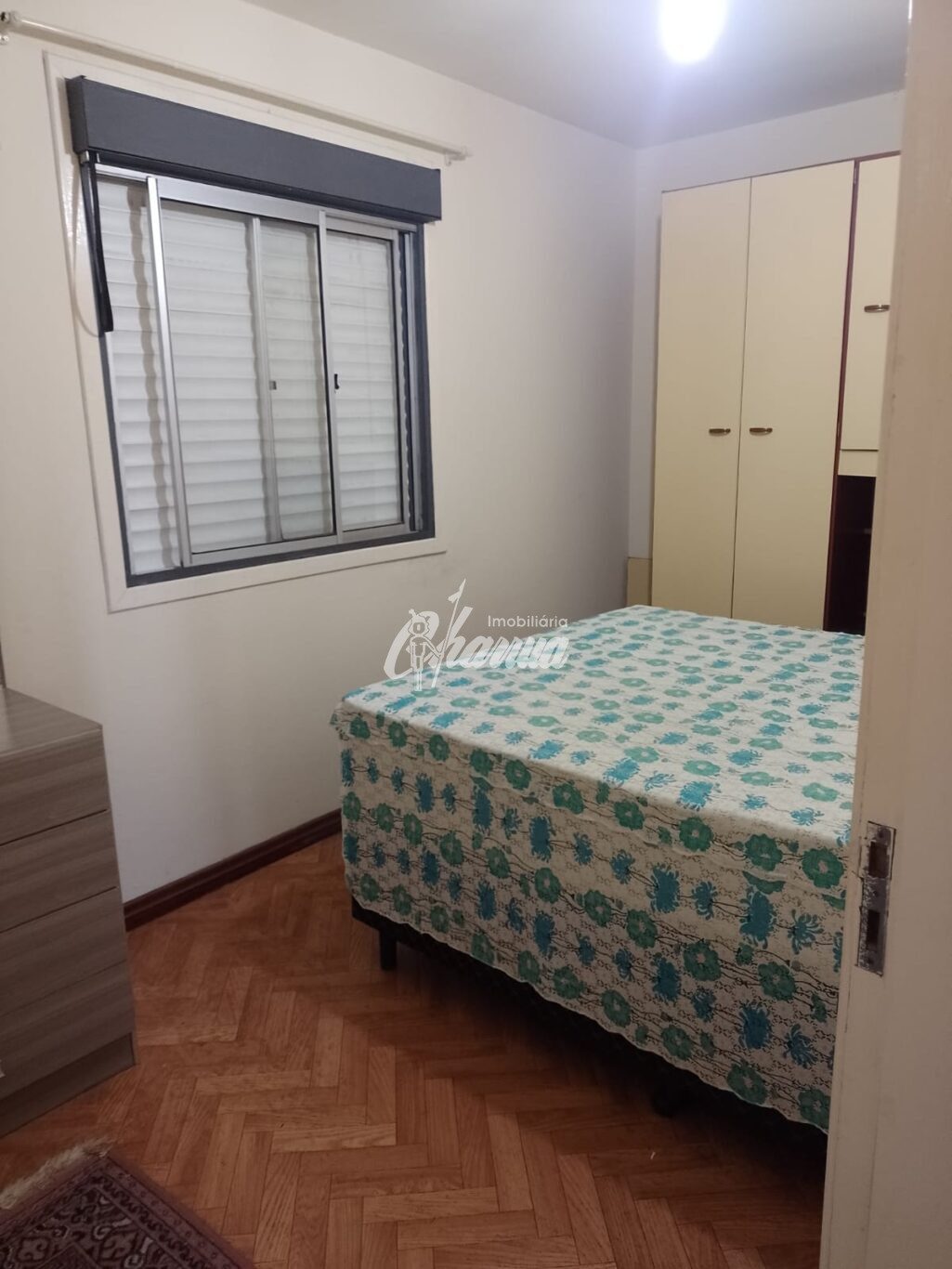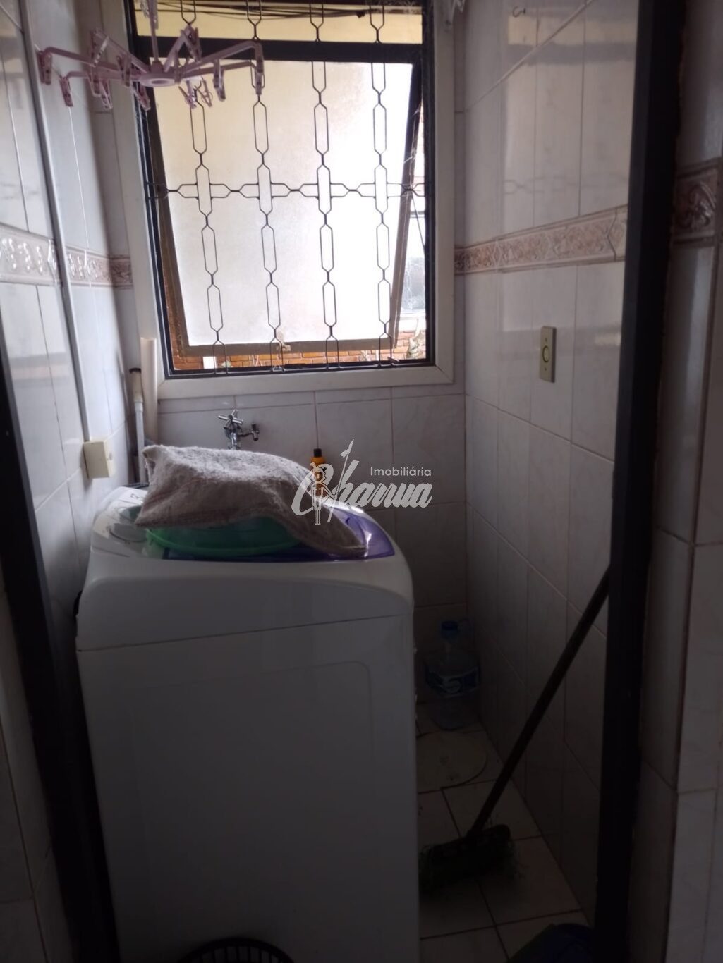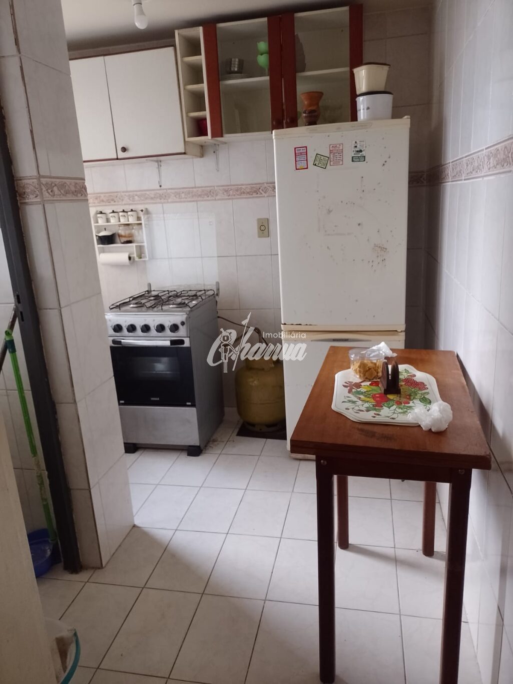 Apartamento com sala, dois dormitórios, banheiro, cozinha, área de serviço e box para carro.